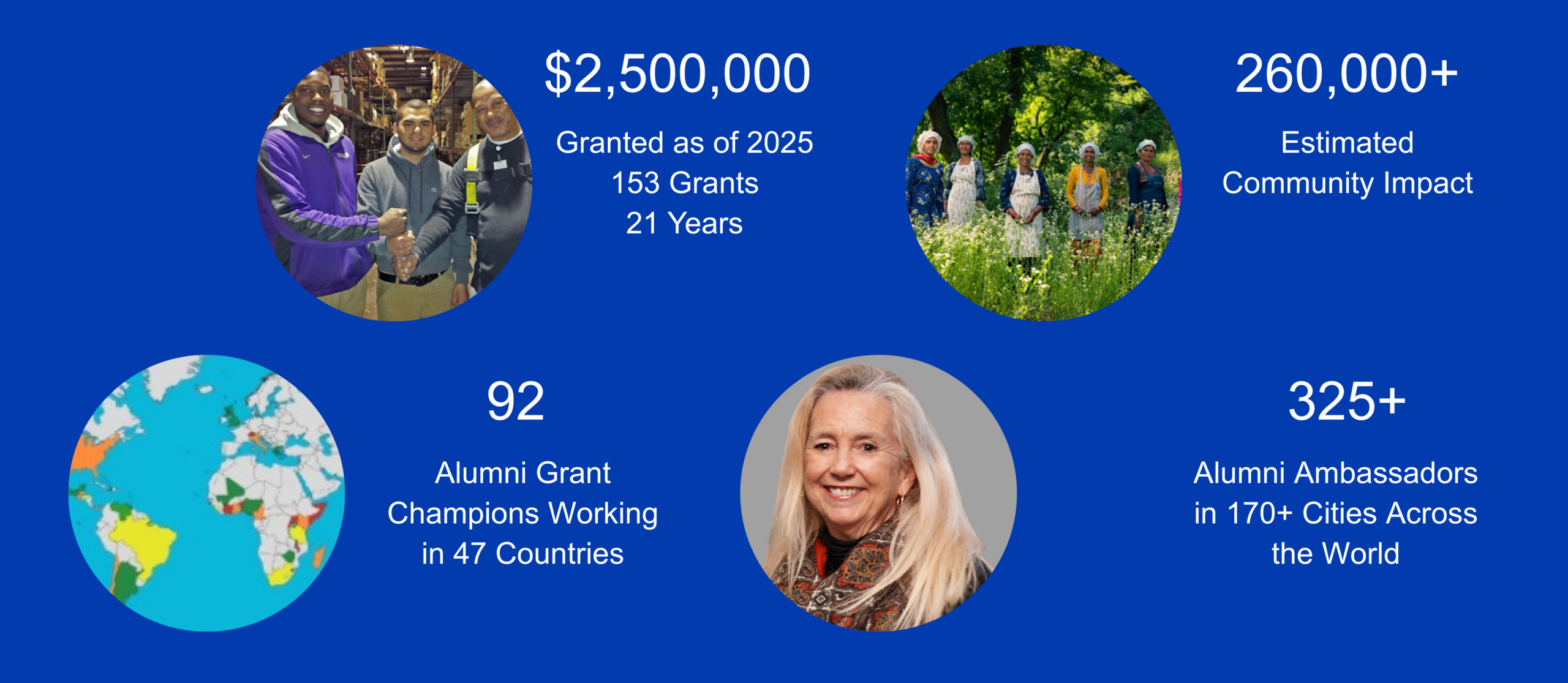 As the philanthropic arm of the P&G Alumni Network, we multiply the efforts of P&G alumns providing people in need economic paths to prosperity. Through strategic grant making to charitable organizations with active P&G alumni involvement, we empower people around the globe to build bright, sustainable futures through job, vocational training, and new business start-ups.